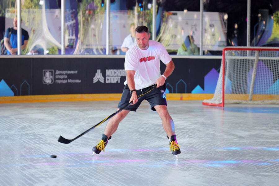Размер площадки 34 на 18 метров, что позволяет не только заняться свободным катанием, но и сыграть в хоккей. Причем посетители могут забрасывать шайбы еще и с помощью приставки в расположенной рядом зоне.