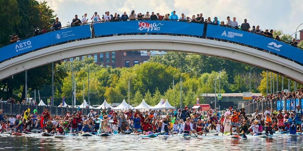 День физкультурника отмечали не только на суше, но и на воде. Четыре тысячи любителей сапсерфинга выбрали «Яуза Фест» на набережной Академика Туполева, где их ждали занятия по сап-йоге, гонки на сапбордах и конкурс костюмов.