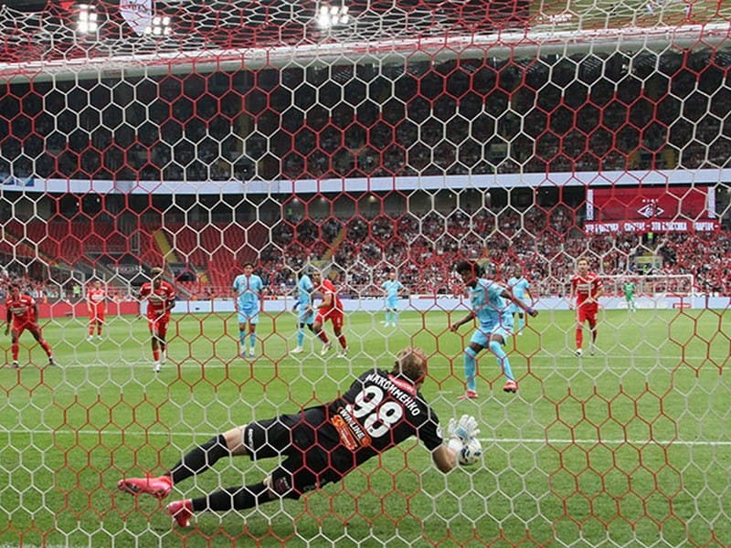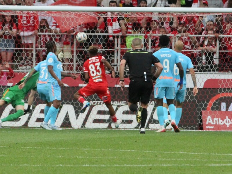 Гости весь первый тайм проходили пешком, практически ничего не создав у ворот хозяев. Но, как говорится, сильным везет, а очень сильным очень везет. Так произошло и с «Зенитом». После навеса Жерсона, казалось бы, Маркиньос должен был выбивать мяч, однако набежавший Луис Энрике опередил соотечественника – спартаковец случайно попал зенитовцу ногой в живот. Максименко отразил удар Кассьерры с «точки», также спартаковский страж ворот справился и с первым добиванием, а вот повторный удар Матео привел к изменению счета на табло.