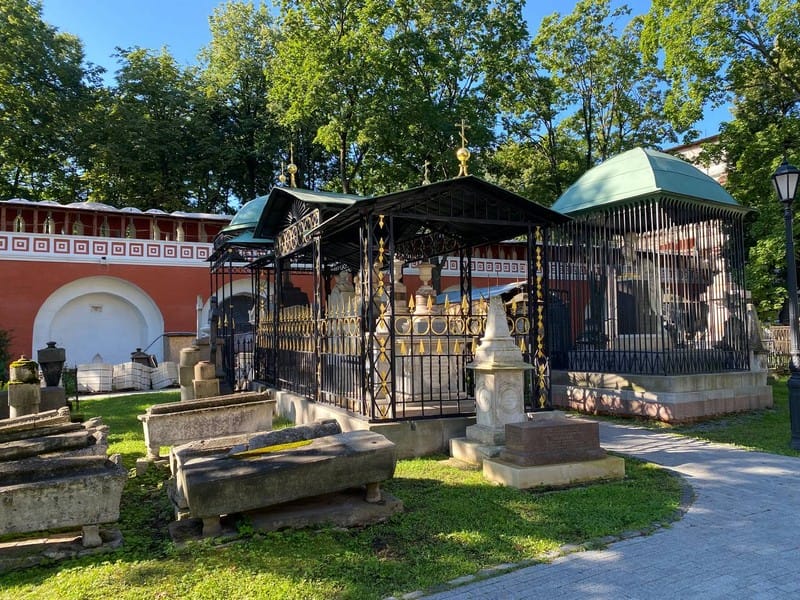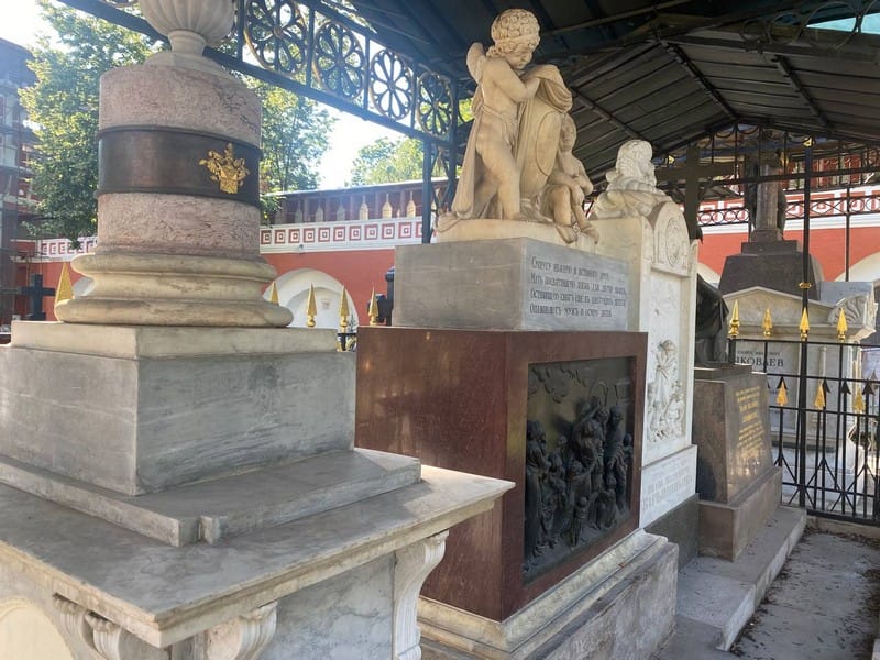 Одним из ярких образцов надгробных сооружений начала XIX века стало захоронение Павла Яковлева и Векшиных в южной части некрополя Донского монастыря.