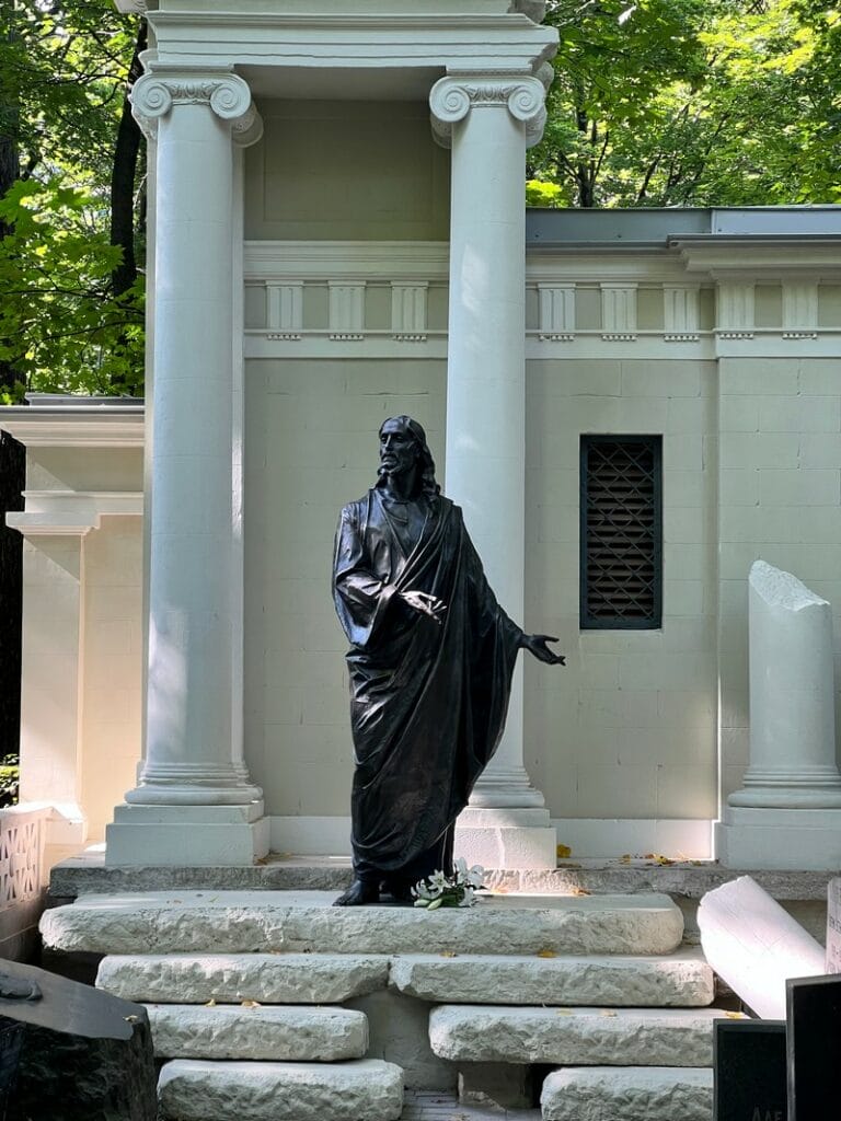 В 2023 году в рамках комплексной реставрации на стилобат усыпальницы вернули бронзовую скульптуру Христа. Копия была изготовлена во время реставрационных работ. Оригинал скульптуры, созданный итальянским мастером Рафаэлло Романелли во Флоренции в конце XIX века, изначально располагался на ступенях, ведущих к усыпальнице. В 1940-х годах скульптуру перенесли в храм Смоленской иконы Божией Матери Новодевичьего монастыря, а в 1980-х она оказалась в археологическом кабинете Московской духовной академии, где находится до настоящего времени.