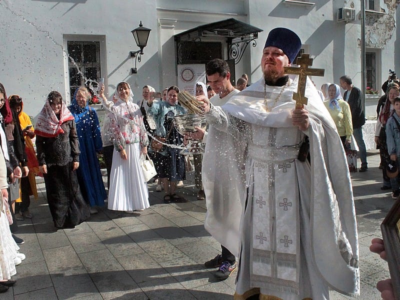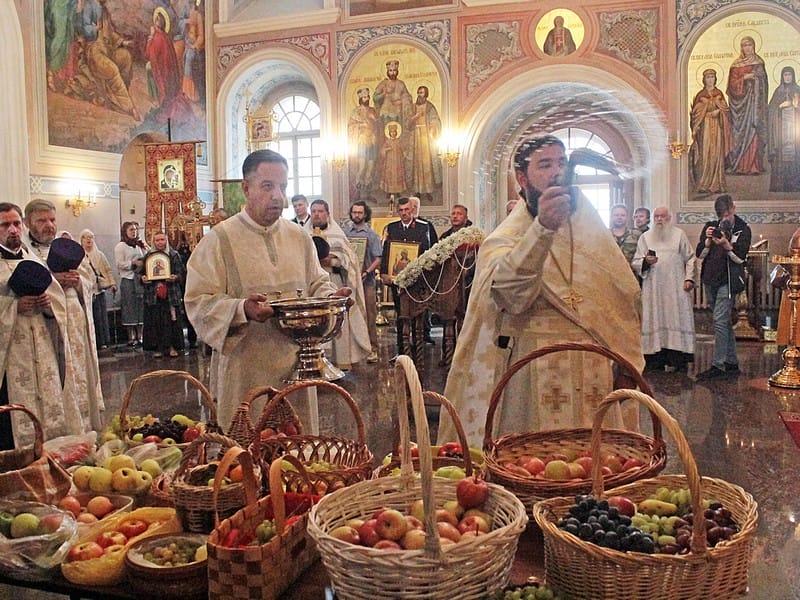 Праздничную службу возглавил настоятель храма иерей Тимофей Чайкин, которому сослужили войсковой священник Сибирского казачьего войска иерей Георгий Вардугин и духовенство храма. На праздник прибыли атаман Всероссийского казачьего общества Виталий Кузнецов, офицеры штаба ВсКО, княгиня Екатерина Трубецкая, проректор по казачьей культуре МГУТУ им. К. Г. Разумовского Алексей Хаюров, преподаватели и студенты вуза, московские казаки, прихожане. Торжество началось с водосвятного молебна, продолжилось Божественной литургией, а затем верующие прошли крестным ходом вокруг храма. Напомним, что на Преображение Господне выпадает народный праздник, пришедший из языческих времен, – Яблочный Спас, и 19 августа, как символ обновления и благодарности принято освящать плоды нового урожая – виноград, яблоки и другие фрукты.