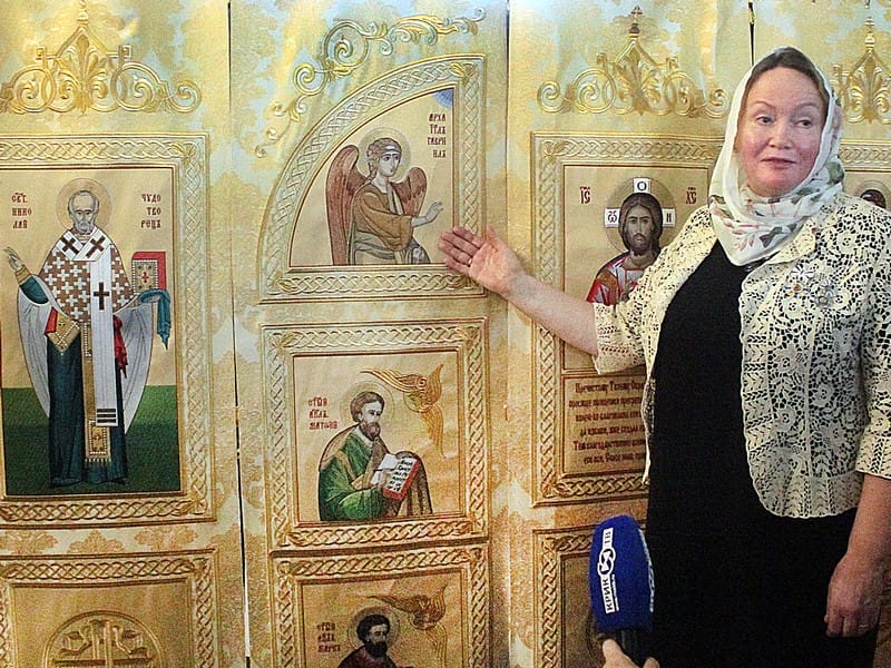 Важным событием дня стала презентация уникального проекта – вышитого иконостаса для походного храма. Как сообщила художественный руководитель Международного фестиваля «Казачья станица Москва» Маргарита Железнова, этот походный храм – уникальная православная святыня, он создан по образцу исторических ратных церквей, сопровождавших казаков в походах.