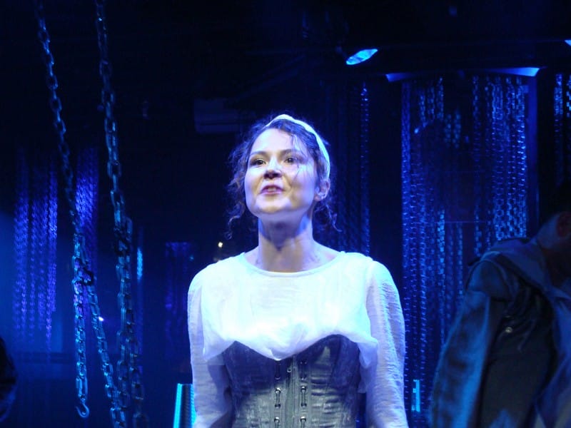 Приятно удивляет лаконичная и емкая сценография Олега Леушина и Нины Юнгвальд-Хилькевич. Многочисленные тяжелые цепи, спускающиеся с потолка, несут философскую и прикладную нагрузки одновременно, зеркалящие поверхности создают дополнительное дыхание жизни «второго плана». Огромная деревянная доска на сцене превращается то в подиум, то в расстеленную кровать, то в стол, за которым происходит полуночная пирушка. Впечатляет выразительная музыка, подобранная Михаилом Коротковым, и красивое световое решение сцены, за которое отвечает Ильяс Саттаров.