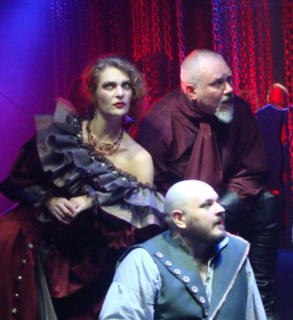 Среди явных достоинств постановки Олега Леушина – виртуозное пластическое решение спектакля. Все артисты во главе с художественным руководителем двигаются потрясающе и чудо как хороши! Это, кстати, один из немногих спектаклей в Москве, не вызывающих неловкости в разнообразных эпизодах боев на шпагах: постановщики фехтовальных сцен Виктор и Олег Мазуренко постарались на славу.