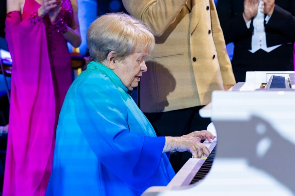 У присутствовавших в зале зрителей в тот вечер создалось редкое ощущение, что им выпала удача прикоснуться к чему-то настоящему, большому, легендарному и одновременно простому и понятному… Под фортепиано, за который в финал вечера села 95-летняя Александра Пахмутова, зал стоя дружно спел «Надежду» и «Старый клен». А потом еще долго не отпускал Александру Николаевну, скандируя «Спасибо!»