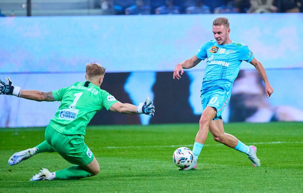 РПЛ. 10-й тур. «Зенит» (Санкт-Петербург) 5:2 «Оренбург». Голы: Глушенков, 22, 34, 77, 90+2, Соболев, 74 – Ценов, 83, Камилов, 88.