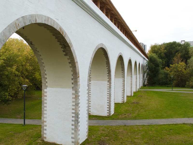 Это самое крупное из пяти акведуков строение получило название от села Ростокино. Его длина составляет 356 метров, а высота устоев достигает 15 метров. Для облицовки использовался камень из разобранной стены Белого города. Акведук функционировал до 1902 года, затем служил опорой для водопроводной магистрали, а с 1962 по 2004 год – для теплотрассы.