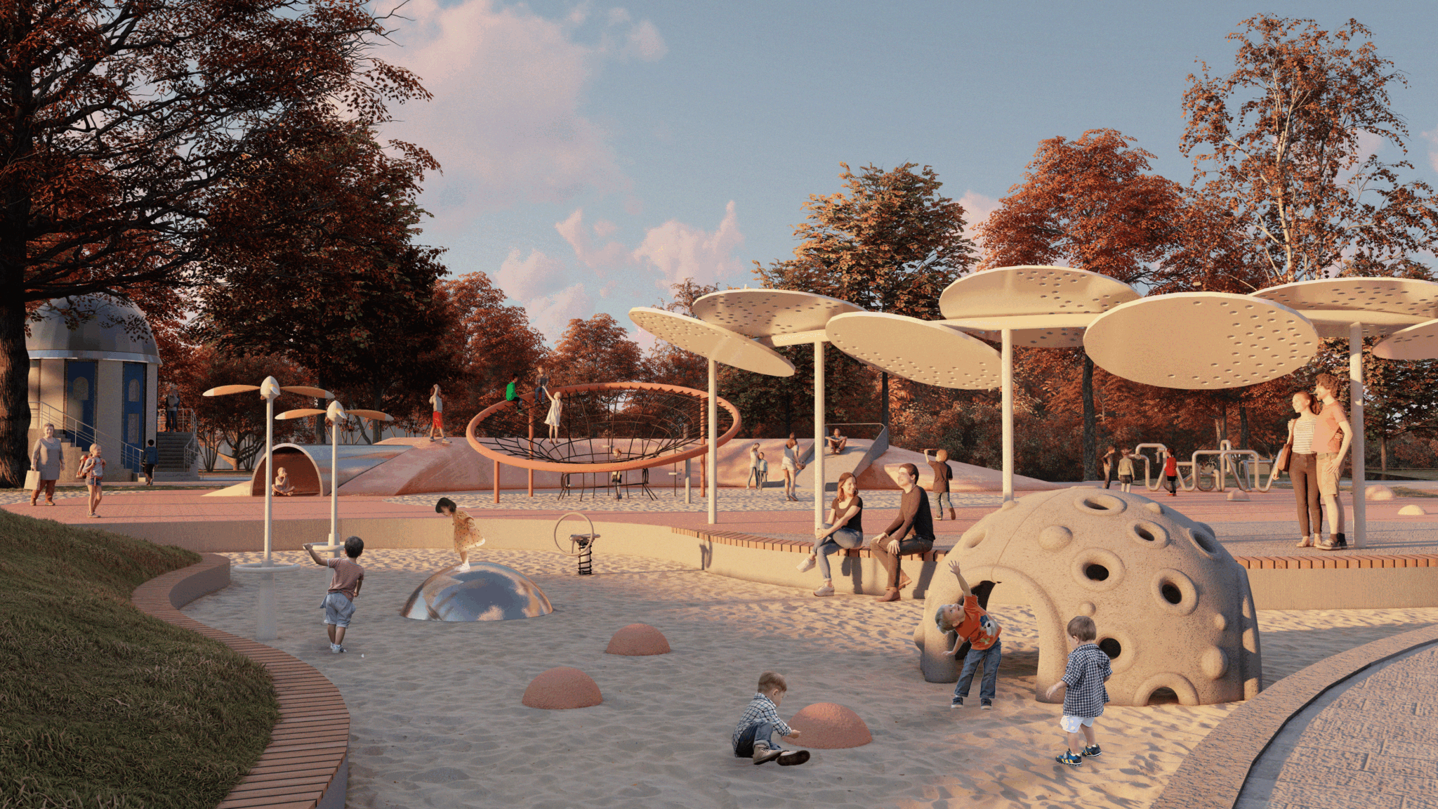 «Детская игровая зона «Звездочеты» разместится возле обсерватории, там смонтируют большой комплекс из пяти «гнезд», которые расположены на разной высоте и объединены металлическими сетчатыми переходами, установят игровой элемент «Плутон» и навес с павильоном для пианино, обустроят большую песочницу. В зоне «Маршрут» маленькие посетители парка смогут пройти игровой путь с различным оборудованием – качелями, гамаками, канатными балансирами, горками, сетями и тоннелем для лазания», – отметил Пётр Бирюков.
