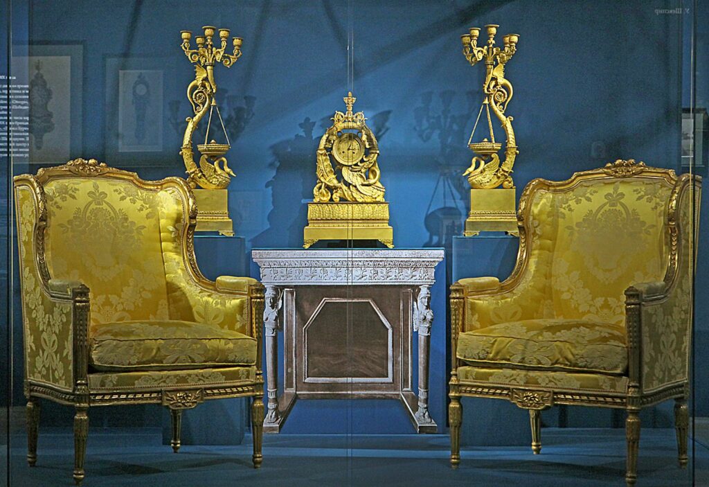 Если путешественникам и первооткрывателям была важна точность часового механизма, то во дворцах и салонах ценили изящество, красоту, роскошь. Представить каминные, настенные, напольные, настольные часы в интерьере помогают живописные портреты, изображения кабинетов XVIII–XIX веков, сюжетные композиции. В уникальных часах XIХ века можно увидеть символизм, обращение к античной мифологии.