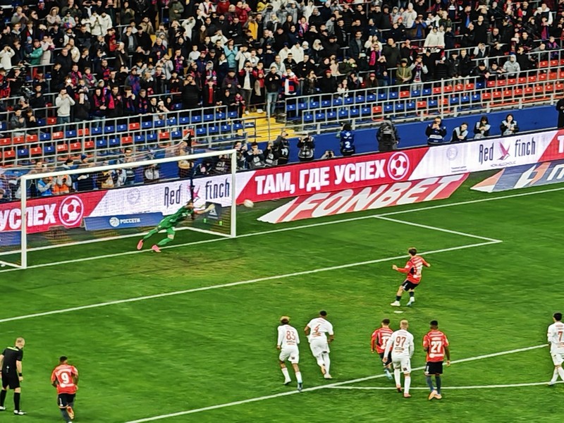 Армейцы начали ураганно. Первая атака – гол: Глебов забрал в подкате в центре поля, Обляков идеально отпасовал на Мусаева, Тамерлан пяткой оставил Круговому, тот с левой закрутил во вратарскую, а Глебов, опередив спартаковского защитника, отправил мяч в сетку гостей. Вторая атака – второй гол. После видеопросмотра арбитры установили: Жедсон сфолил против Алеррандро еще в пределах штрафной – пенальти в ворота «Спартака». Ну, если это одиннадцатиметровый, то тогда это балет, а не футбол. Такие пенальти не красят ни игру, ни дерби, ни чемпионат. Армеец Обляков с точки пробил в правый от себя угол, Максименко угадал, но дотянуться не смог. Третья атака – и снова гол! Выход Глебова один на один с Максименко в подкате остановил Литвинов, Алеррандро подобрал мяч и катнул к линии вратарской, а Круговой по-балетному подставил ногу, закатив круглого в семиметровые спартаковские ворота. А между первым и вторым голами Мусаев получил повреждение задней поверхности бедра – вышел Алеррандро.