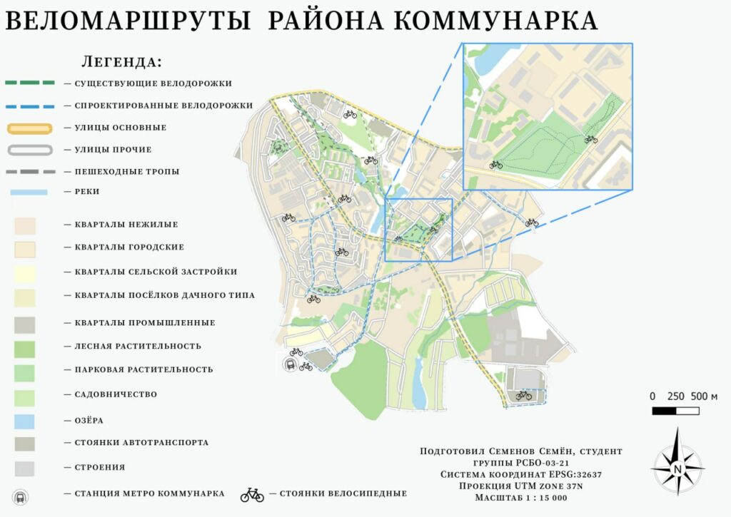 По словам студента технологического университета Семёна Семёнова, аналогов авторского проектирования велоинфраструктуры для района Коммунарка ранее не существовало.