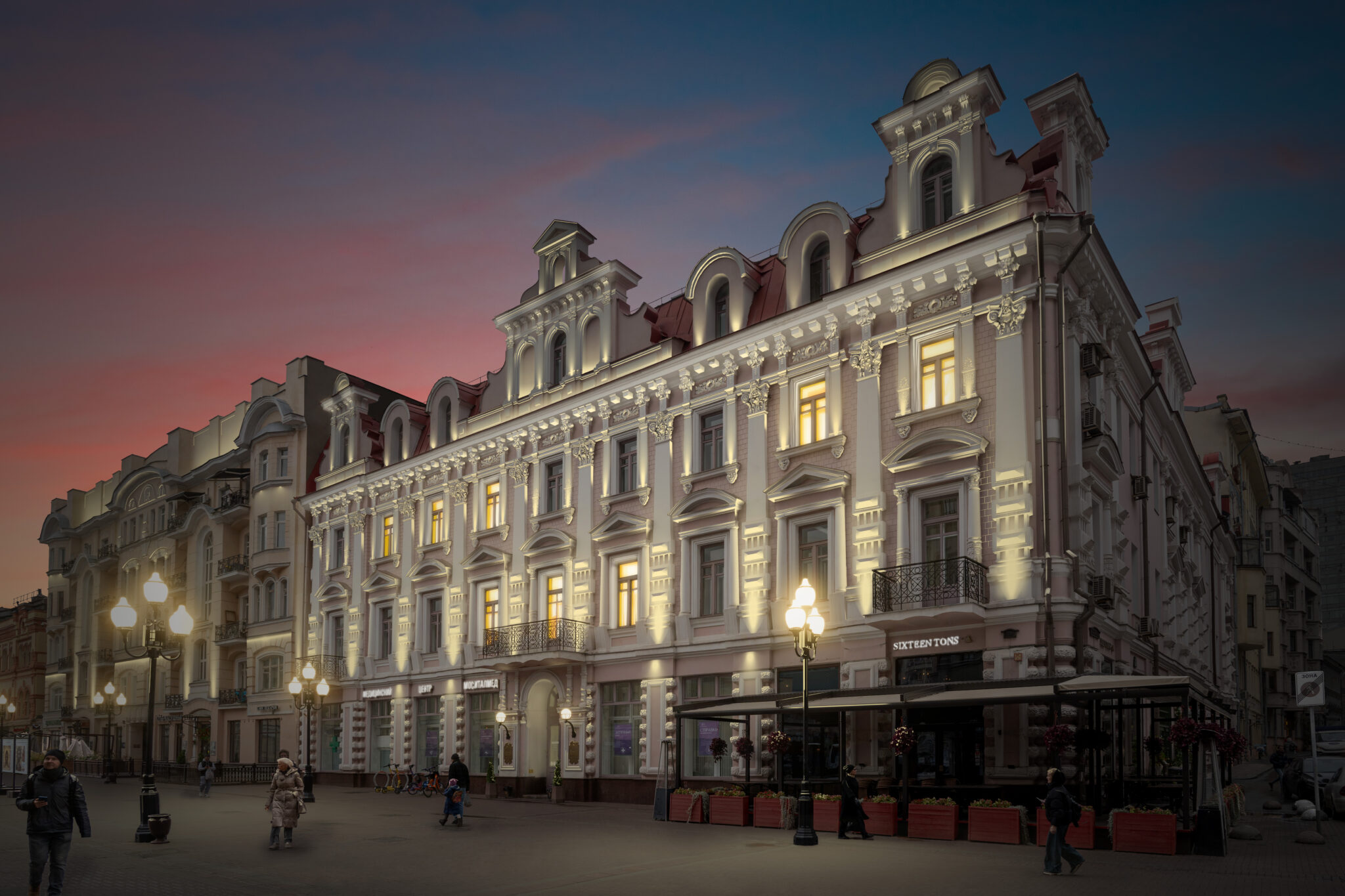 Архитектурно-художественную подсветка украсит еще 11 зданий на улице Арбат в центре Москвы.