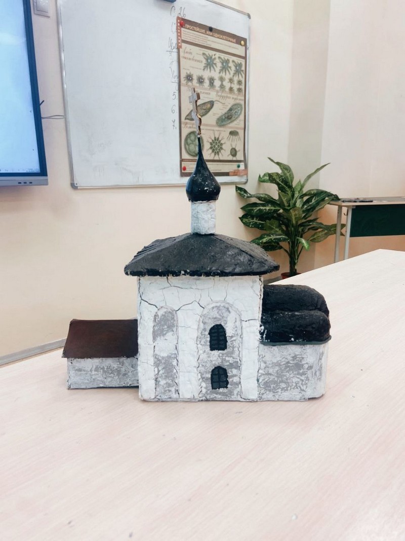 Ученик кадетского класса Дмитрий Ерохин для участия в олимпиаде сделал макет древнейшего памятника белокаменной архитектуры Руси – церкви Бориса и Глеба в Кидекше, которая является визитной карточкой Суздальского района Владимирской области, а также объектом культурного наследия ЮНЕСКО.