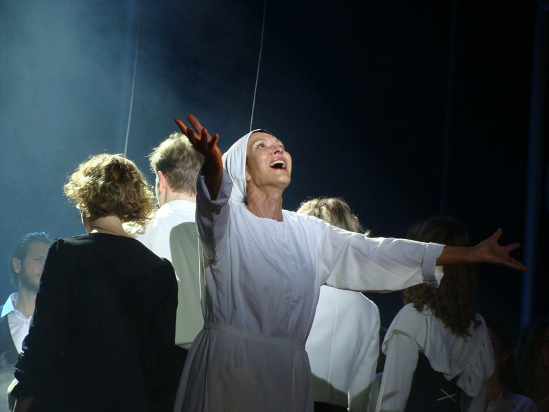 На заднике сцены постоянно возникали слегка размытые и от того кажущиеся живыми портреты больших артистов, работавших с Марком Анатольевичем в разное время. Они словно поддерживали своих молодых коллег: «Ленком» – пространство намоленное, здесь, как говорится, и стены помогают.