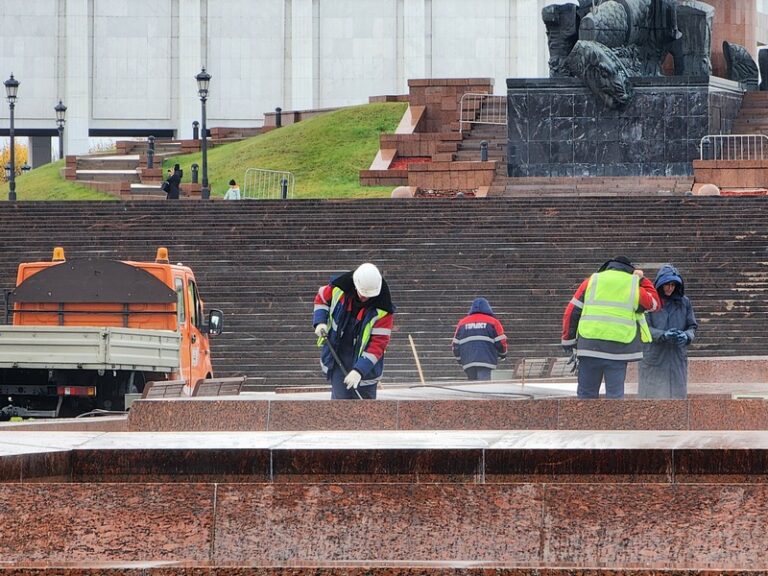 «Специалисты Комплекса городского хозяйства начали готовить к зимнему периоду фонтанный комплекс «Годы войны» на Поклонной горе, это один из самых больших столичных фонтанов, он был открыт в 1995 году к празднованию 50-летия окончания Великой Отечественной войны. Вначале сооружение тщательно промоют с помощью щеток, аппаратов высокого давления и специального моющего средства. Эта процедура займет пять дней, будут задействованы пять бригад и столько же поливомоечных машин. После завершения очистки приступим непосредственно к работам по консервации фонтана, они включают в том числе демонтаж форсунок и подводных светильников, установку заглушек и защитных элементов в чаши», – сообщил Пётр Бирюков.