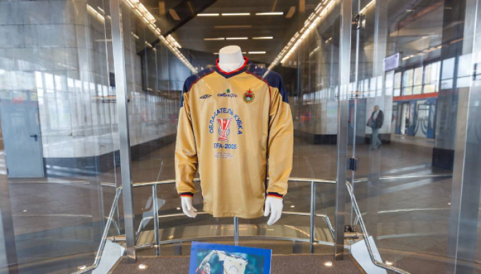 Выставка, посвященная 20-летию победы футболистов ЦСКА в Кубке УЕФА, открылась на станции метрополитена «Воробьёвы горы».