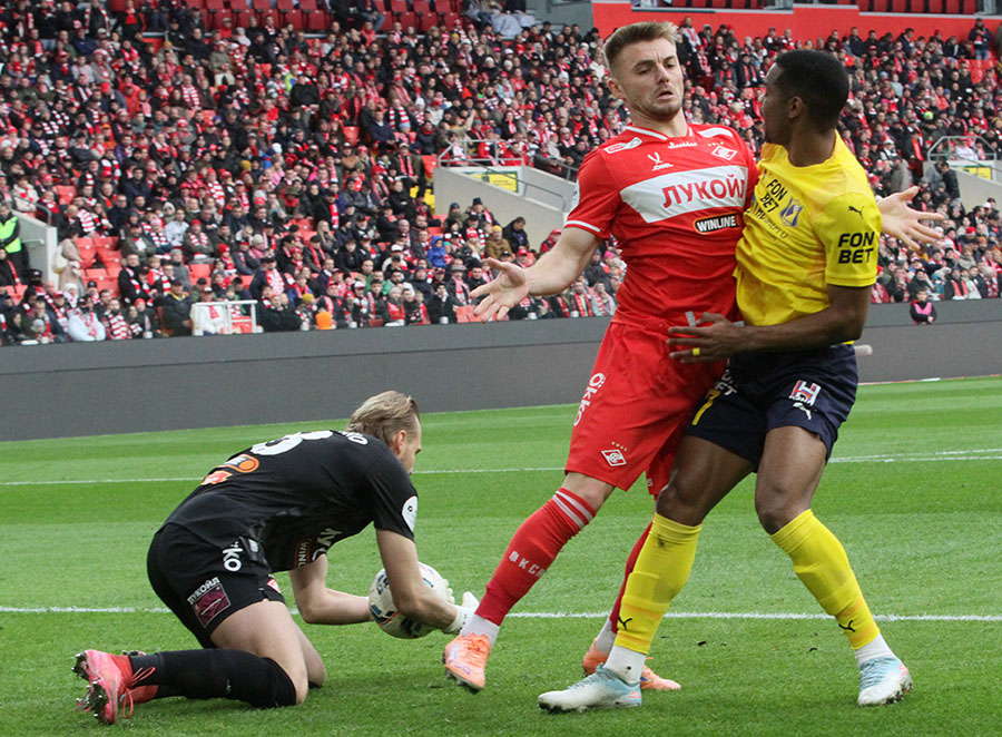 На 8-й минуте защитник московского «Спартака» неудачно приземлился на газон и получил серьезное повреждение – вынужденная замена. В середине первого тайма Джику недозволенным приемом остановил Голенкова, который мог убегать к воротам Максименко. Главного арбитра Кукуяна VAR зовет к монитору. И «Спартак» остается в меньшинстве. А голевые моменты-то где, спросите вы? А их нет, команды на двоих пару раз пробили в створ ворот. И да, «Ростов» был явно ближе к голу.