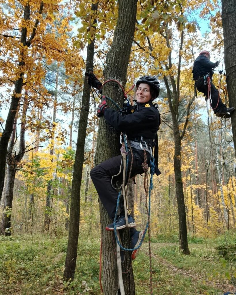 Во время занятий Любовь Оболенская училась закреплять трос на высоте, подниматься по деревьям, ловить животное, находящееся в стрессе, перемещать животное в переноску с помощью длинной палки, а также другим тонкостям зооспасательной работы.