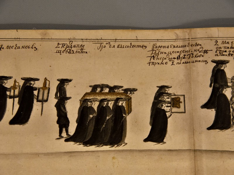 «Известно, что Пётр I предписал русским дипломатам присылать из-за рубежа описания похоронного ритуала при дворах Европы, начав тем самым преобразования и в этой сфере», – сказала Елена Гагарина.