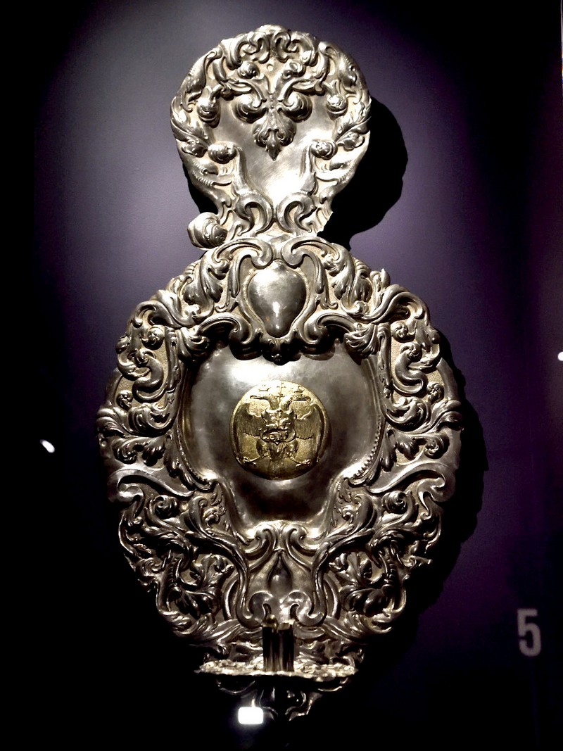 В выставочном зале Патриаршего дворца впервые собраны предметы, связанные с церемонией прощания с Петром Великим в Печальной зале Зимнего дворца и последующим торжественным шествием к месту захоронения в Петропавловском соборе. Среди экспонатов – государственные регалии, парадное конское убранство, а также доспехи «Печального» и «Радостного рыцарей», созданные по указу Екатерины I специально для церемонии 1725 года. Эти символические фигуры олицетворяли вечную славу монарха и торжество его дел.