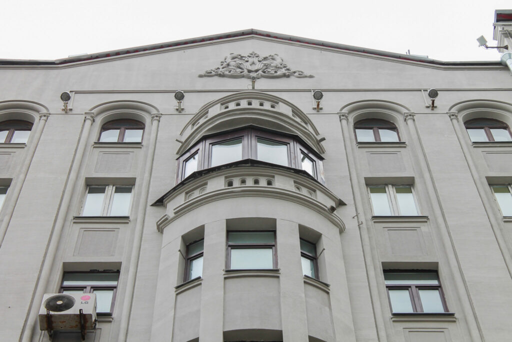 На начальном этапе очистили фасад от загрязнений и обработали участки, подверженные воздействию влаги, антисептическими средствами. Все декоративные элементы, включая лепной декор, тщательно восстановили. После этого фасад окрасили в исторические цвета, соответствующие колористическому решению: для основного фасада выбрали оттенок «бежевый чеснок», а для декоративных элементов – «серая фланель». Также обновили входную группу и отреставрировали цоколь.