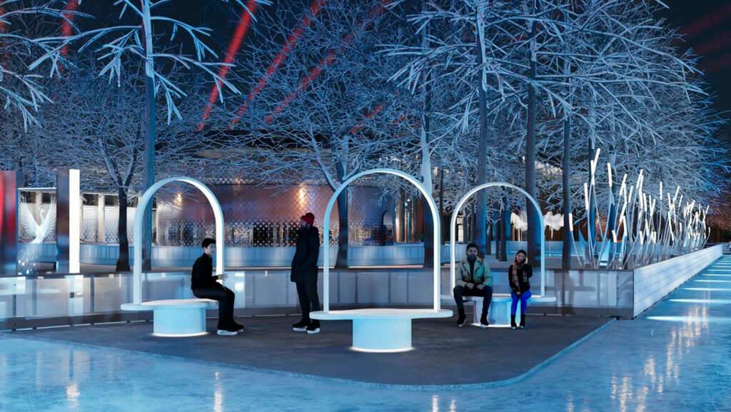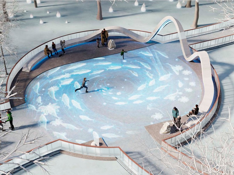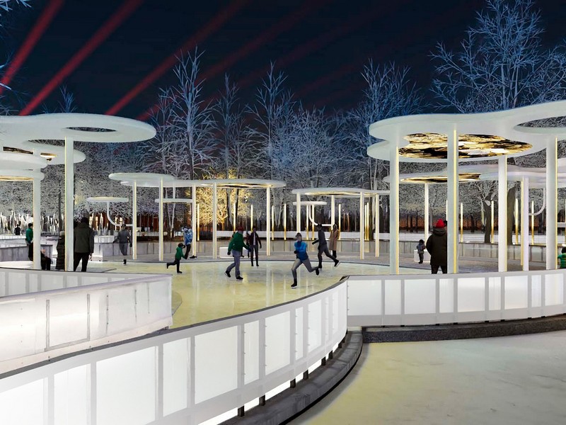 Центральную часть катка и боковые аллеи объединят с помощью архитектурно-художественной подсветки, звука и инсталляций.