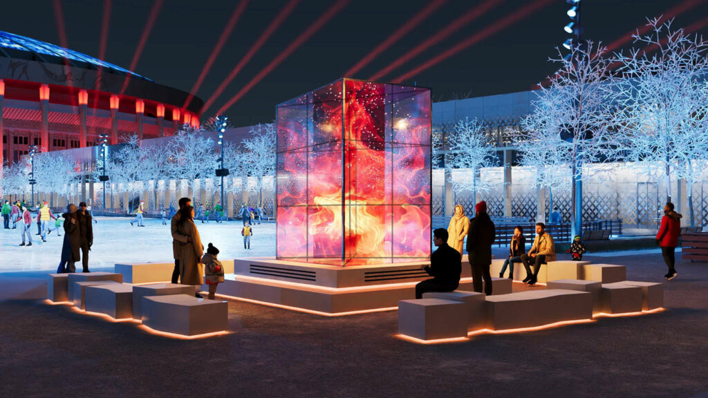 На площади со стороны набережной центральным элементом станет «Куб энергии» – интерактивная инсталляция, оснащенная аудиосистемой. На одной из аллей расположится мультимедийная пространственная инсталляция «Таинственный лес».