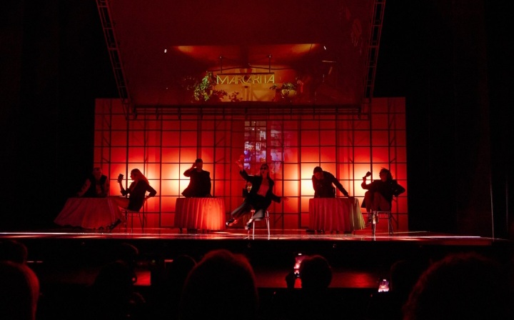 В спектакле звучат песни Магомаева, Ободзинского, ария из мюзикла «Чикаго».
