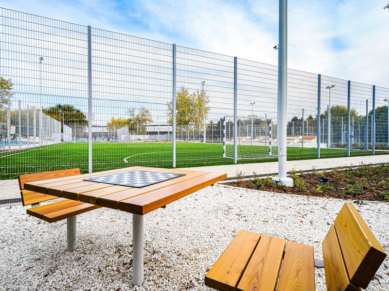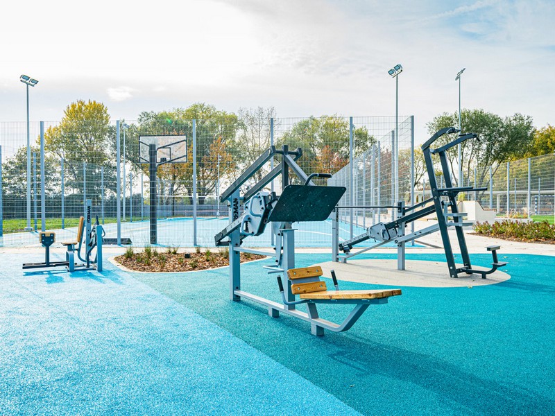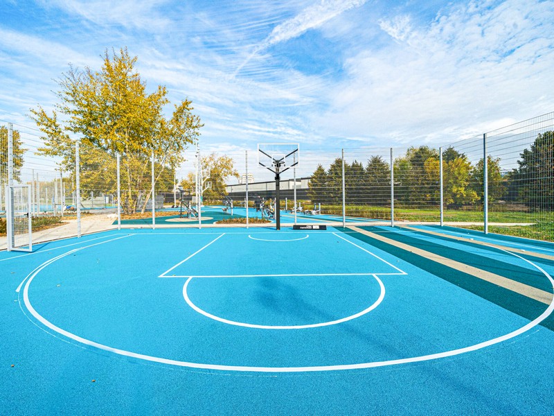 В составе спортивного кластера обустроили две универсальные площадки для игры в бадминтон, волейбол, баскетбол, зоны для стритбола, поле для мини-футбола с искусственным газоном. В настоящее время специалисты Комплекса городского хозяйства завершают создание спортивного павильона и площадки для падел-тенниса.
