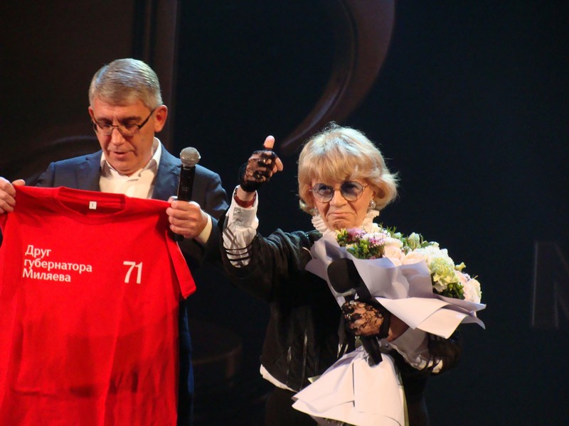 Алла Ильинична вручила государственному деятелю эксклюзивную футболку с надписью «Самый музыкальный губернатор», намекнув, что слоги «ми» и «ля» в фамилии Миляев музыкально обязывают и говорят сами за себя…