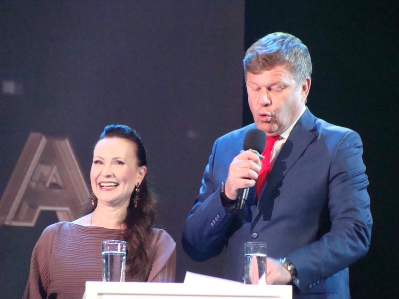 С первых же минут торжественного вечера высокую юмористическую планку задали Президент фестиваля «Музыка и кино» народная артистка России Алла Сурикова и губернатор Тульской области Дмитрий Миляев.