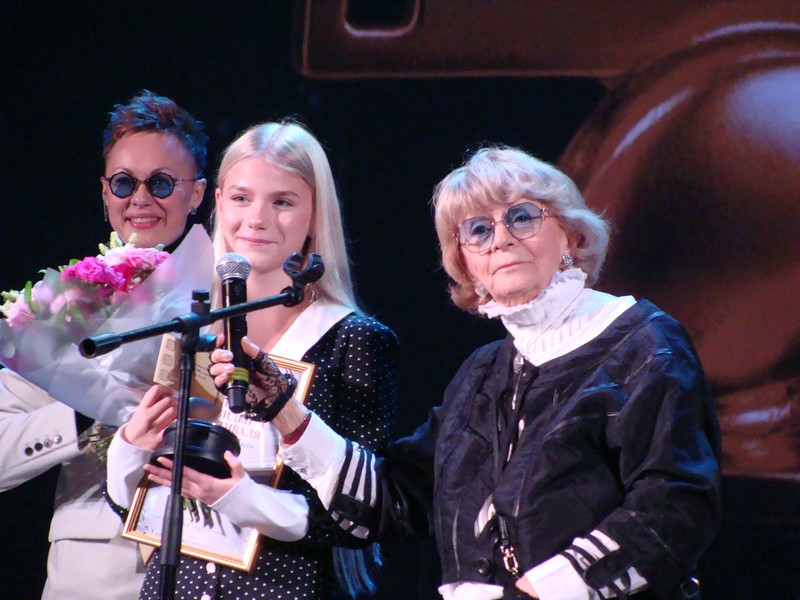 Алла Ильинична много лет преподает на Высших курсах сценаристов и режиссеров, и всегда поддерживает молодежь и начинающих творцов. Вот и на этот раз она вручила свой приз президента фестиваля именно «За яркий дебют». Его получила постановщик фильма «Ритмы мечты» Ирина Боровская. На сцену также поднялась юная Алиса Меняйкина, исполнительница главной роли. Алиса призналась, что уже имея за плечами небольшой актерский опыт, хочет в будущем стать режиссером. И кстати, картина «Ритмы мечты» рассказывает как раз о том, как важно вовремя протянуть начинающему талантливому человеку руку помощи.