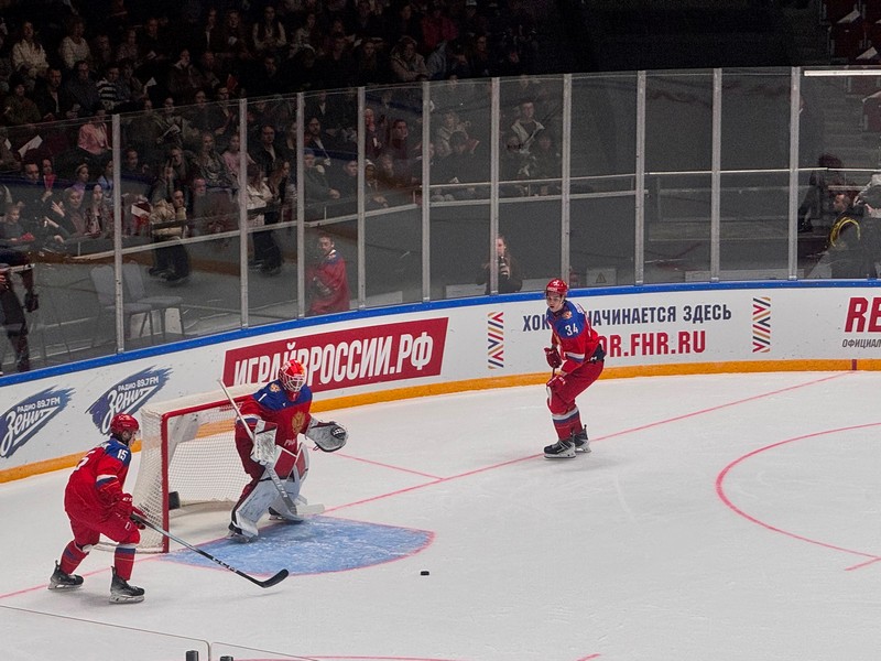С самого начала матча сборная России насела на белорусские ворота и к 12-й минуте все стало на свои места – хозяева начали отправлять шайбу в ворота соперника.