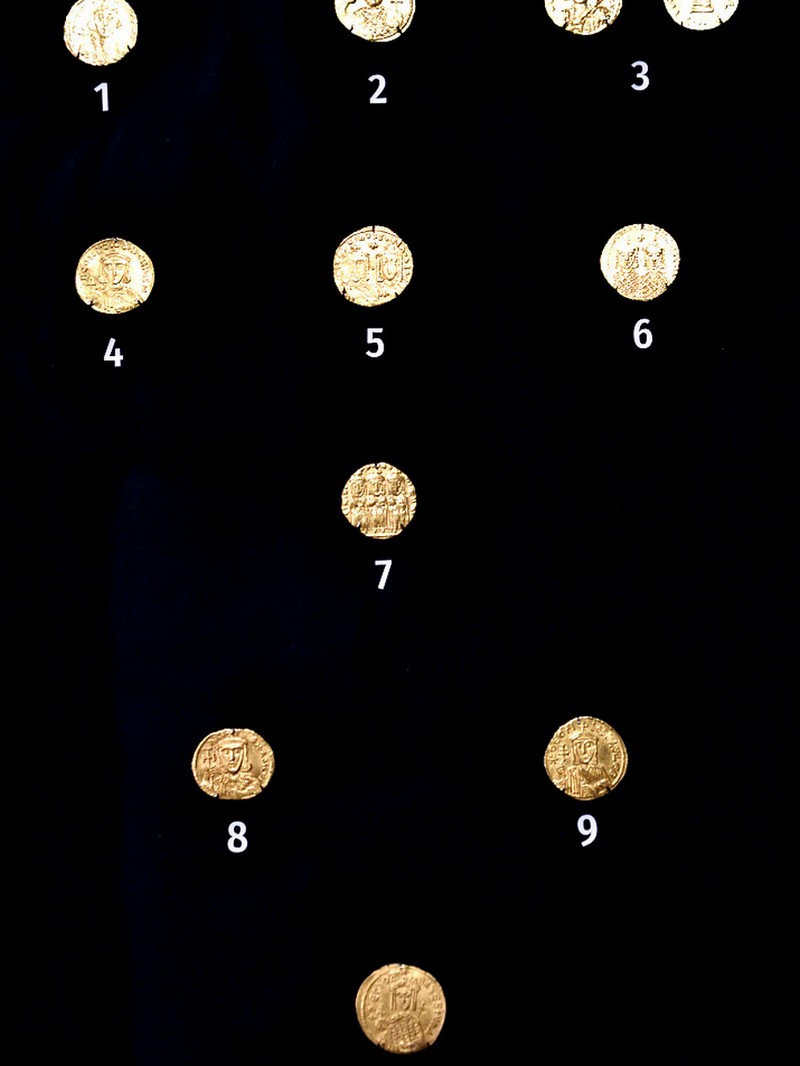 На выставке впервые показаны золотые и серебряные монеты, созданные в период от времени правления императора Константина I (306–337) до царствования Иоанна VIII Палеолога (1425–1448). Некоторым экспонатам уже более 1500 лет. Эти монеты являются отражением повседневной жизни византийцев и тех изменений, которые происходили в экономике и политике империи на всем протяжении ее существования. Они являются источником важнейших знаний политической, религиозной и духовной истории Византийского государства.