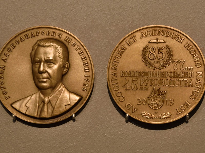 Представленные на выставке золотые и серебряные монеты были переданы в Пушкинский музей в 2023 году в составе нумизматической коллекции Герольда Александровича Щетинина, который увлекся коллекционированием нумизматики еще в детстве. В 1968 году по его инициативе было воссоздано Московское нумизматическое общество, неизменным председателем которого он являлся на протяжении 45 лет.