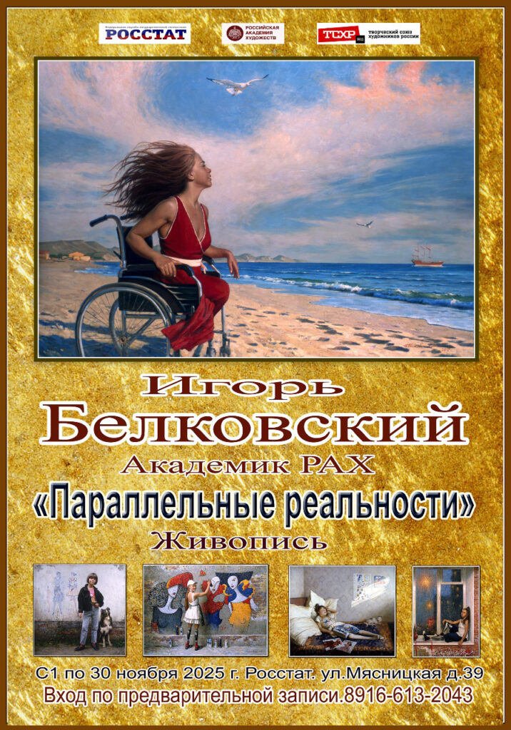 В здании Росстата по адресу: Мясницкая улица, дом 39, экспонируется персональная выставка художника-живописца, академика Российской академии художеств Игоря Белковского.