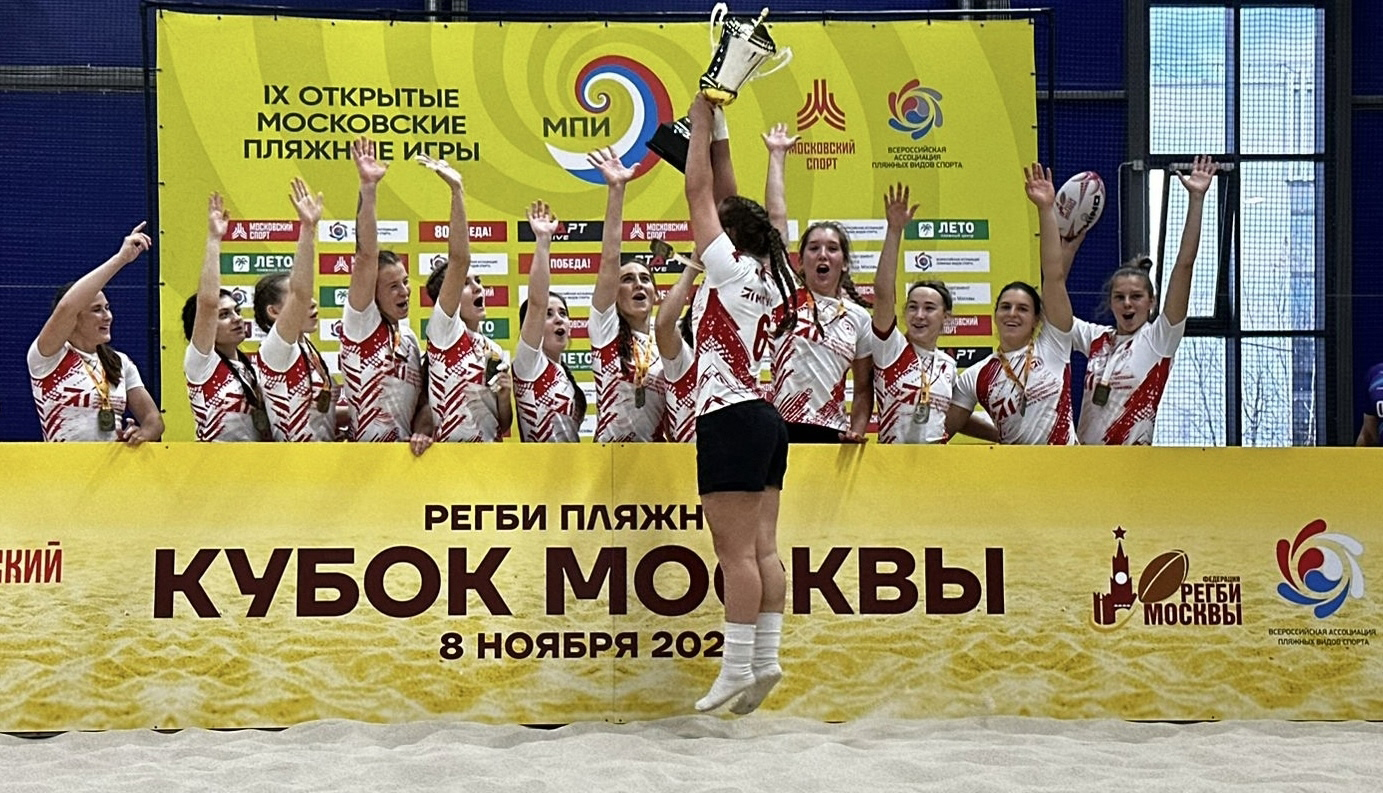 Команда спортивного клуба Московского государственного университета спорта и туризма взяла первое место на Кубке Москвы по пляжному регби среди женщин.