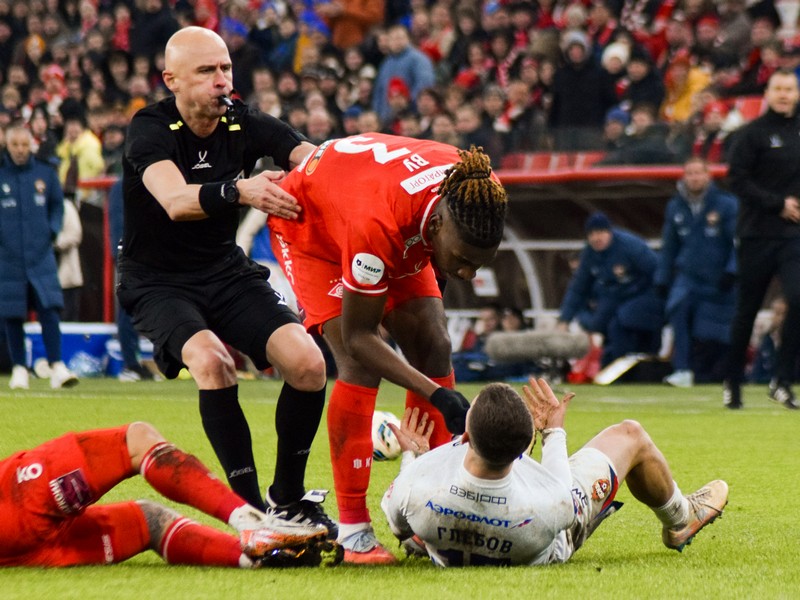 Второй тайм запомнился стычкой, случившейся после фола со стороны Глебова на Денисове, соперники активно потолкались, и судья Карасёв, проконсультировавшись с ассистентами, показал виновным желтые карточки. Ну и куда же без VAR – просмотр эпизода в средине тайма занял почти пять минут.
