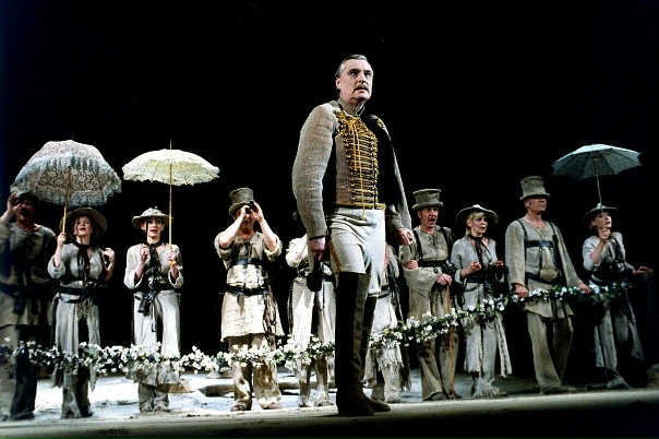 Судьба Холстомера отражалась в судьбе Вязопурихи, ушедшей на первый же зов Милого. А потом Вязопуриха – Валентина Ковель – становилась француженкой Матье, любовницей Серпуховского, а затем представала еще и в образе Мари, содержанки последнего хозяина Холстомера, в котором мы опять узнавали все того же неистребимого Милого. Все эти перетекания из одного мира в другой Товстоногов объединял темой табуна, которому противостояла лучшая лошадь России. Одинокий голос Холстомера, не то стон, не то плач, не то крик изумления и восторга, и хоровое пение табуна, его через край переливающаяся сила, – звуковой образ спектакля.