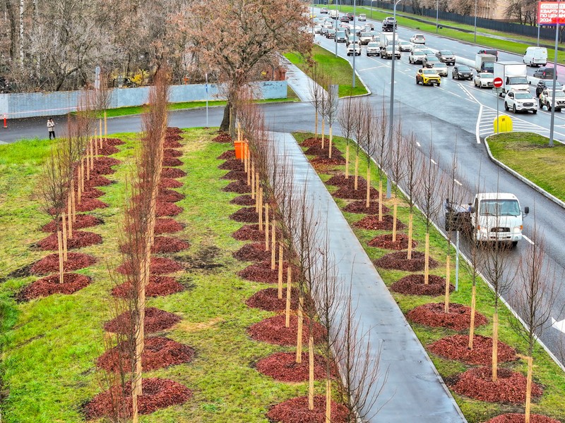 В рамках работ по озеленению началась высадка крупных деревьев. Всего их будет свыше 1,4 тысячи. Кроме того, обустраиваются декоративные зеленые островки с хвойными растениями.