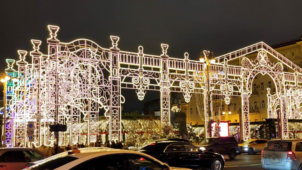 «Продолжаем украшать столицу к новогодним и рождественским праздникам. По всему городу традиционно устанавливаем световые декоративные конструкции, которые создают особую праздничную атмосферу и служат дополнительным источником освещения в темное время суток. В центральной части города специалисты АО «ОЭК» смонтировали восемь световых арок. Они появились на Тверской, Манежной и Пушкинской площадях, в Новопушкинском сквере, на улице Кузнецкий Мост, площади Революции, в Камергерском и Газетном переулках», – сообщил заместитель мэра Москвы Пётр Бирюков.