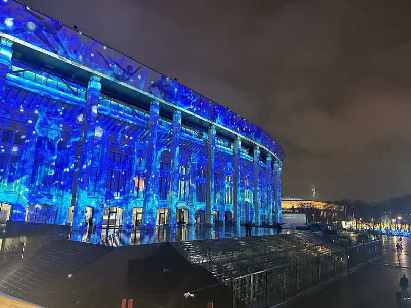 Во время вечерних сеансов фасад Большой спортивной арены станет мультимедийным полотном для тематических шоу с помощью технологий видеомэппинга.