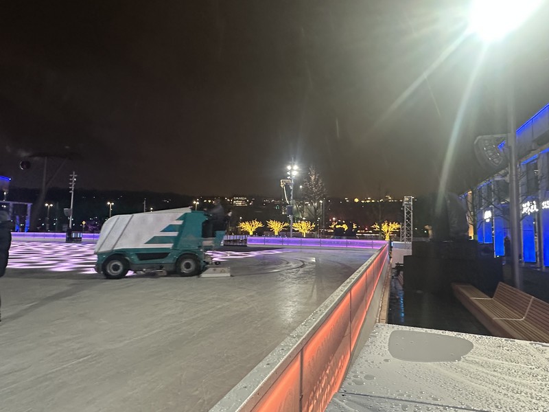 По словам специалистов, каток состоит из легких конструкций и сноуматов, которые быстро разбираются. Лед размораживается, вода уходит в водосточную систему. Конструкции катка убирают на склад до следующей зимы, а на его месте открывается фонтан площадью 3,2 тысячи квадратных метров. Фактически он уже под покрытием катка со всеми помещениями, фильтрами и насосами.