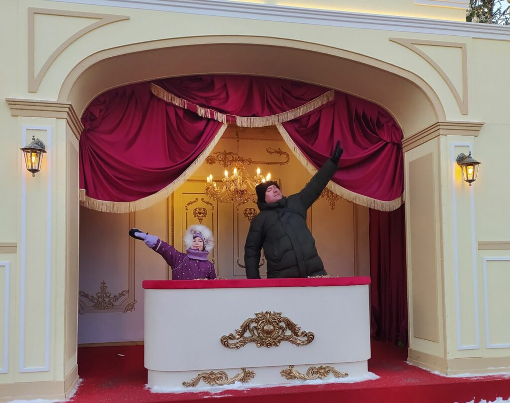 На Театральной площади, как и положено, за одну ночь вырос волшебный сад по мотивам сказки «Щелкунчик и Мышиный король». Дома с причудливыми крышами, где в старинные окна можно увидеть танцующих на балу дам и кавалеров, «хрустальные» цветы у фонтана, зимний лес из елей, пихт, можжевельника. Центральная ель украшена огоньками и серебряными шарами.