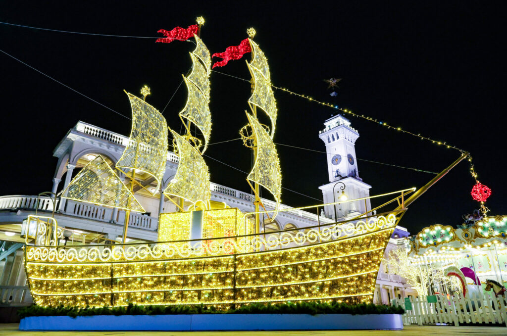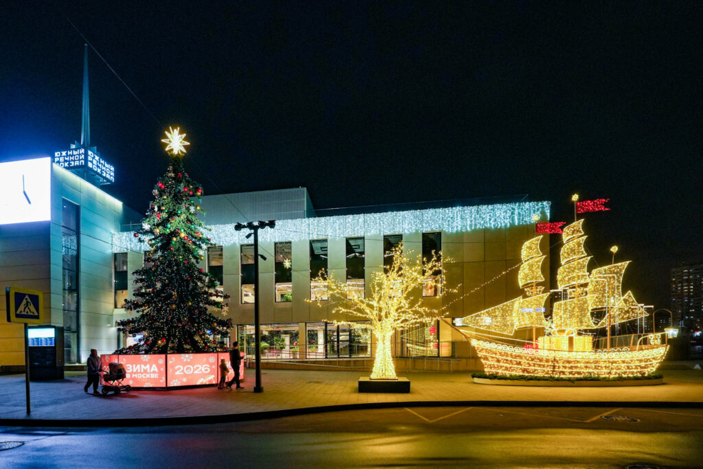 К новогодним праздникам в Москве на Северном и Южном речных вокзалах появились сказочные фрегаты.