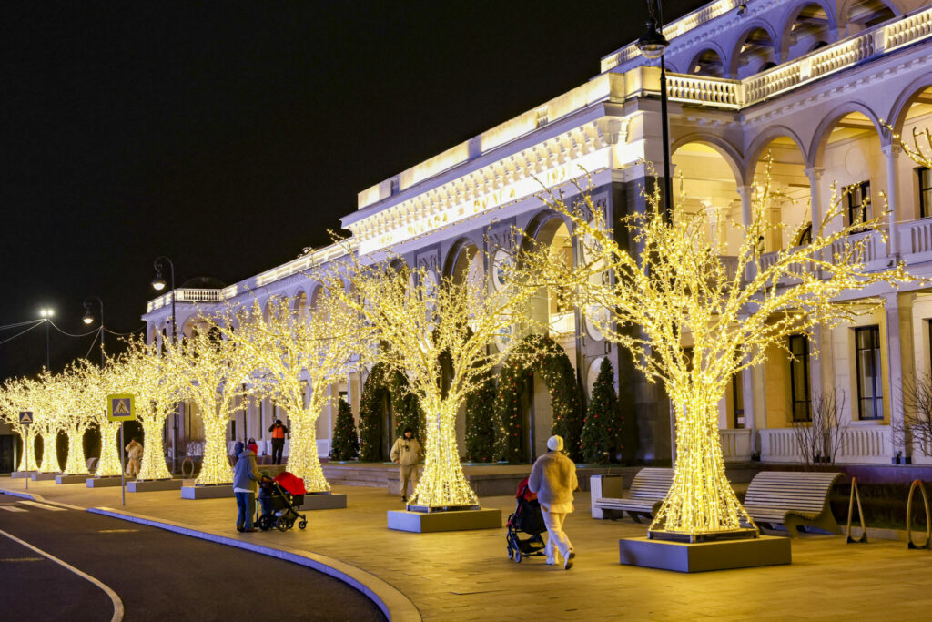 «Световые арки установлены, в частности, на Пушкинской площади и в Новопушкинском сквере, на Тверской и Манежной площадях, в Газетном и Камергерском переулках. Они прошли технологическую модернизацию и работают в полноцветном режиме с возможностью управления светоцветовыми сценариями. Пешеходные зоны Бульварного кольца традиционно оформили световыми тоннелями и цифрами «2026», в парке Победы на Поклонной горе установили гигантский елочный шар», – отметил Пётр Бирюков.