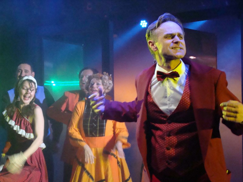 Эти двери (сценография Олега Леушина) постоянно перемещаются по сцене на колесиках и служат основным конструктивным элементом декорации. Они то выглядят деревянными и обшарпанными, то обретают зеркальную загадочную поверхность, то вдруг распахиваются и становятся проходом в какие-то другие миры. Те самые миры, куда за годы монотонной супружеской жизни так и не смог вырваться Лев Евгеньевич Хоботов (Сергей Климов).