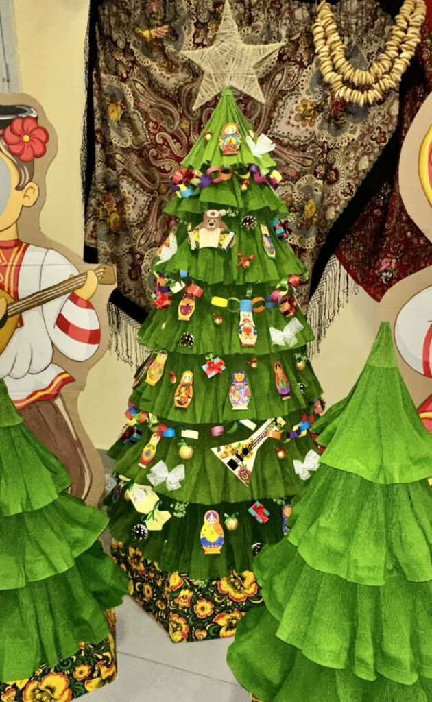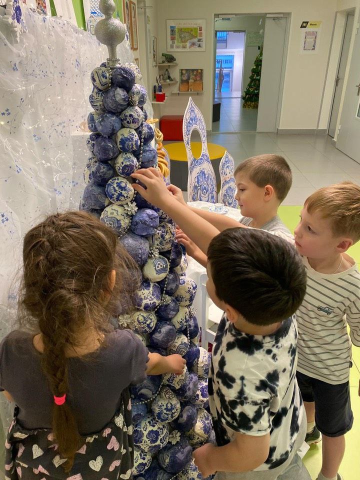 Волшебная сказка преобразила холлы детского сада. В коридорах разместились елочки, сделанные из бумаги, ткани, картона, шаров из суровой нитки. С некоторых лесных красавиц смотрят забавные фотографии ребят в новогодних нарядах, другие удивляют ручной гжельской росписью, третьи – креативными самодельными гирляндами и фигурками, которые в преддверии конкурса старательно мастерили сами дошкольники.