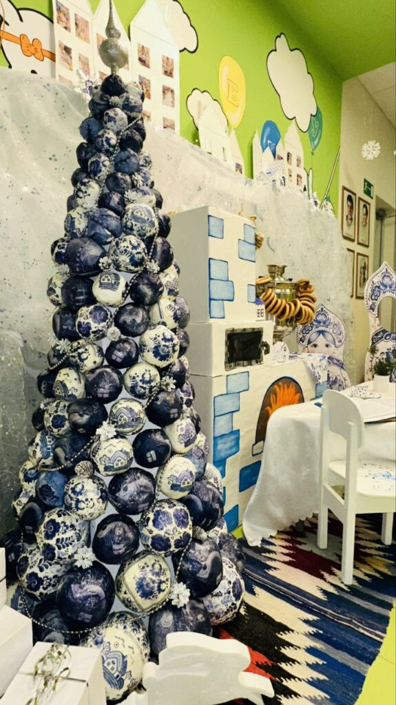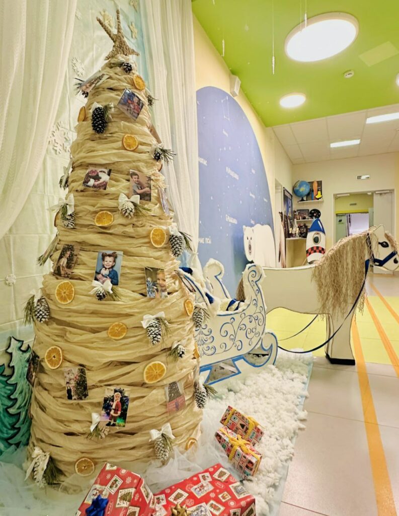 Вокруг креативных новогодних елок развернулись целые инсталляции: тут и сказочная русская печь, и сани-самоходы, и «лошадка мохноногая», сев на которую можно представить себя героем главной новогодней песенки «В лесу родилась елочка». Дети, их педагоги и родители от души поработали над художественными композициями со сказочными персонажами, зимними пейзажами и уютными сюжетами. В итоге получились необыкновенные праздничные фотозоны, снимки с которых станут памятным украшением любого семейного альбома.